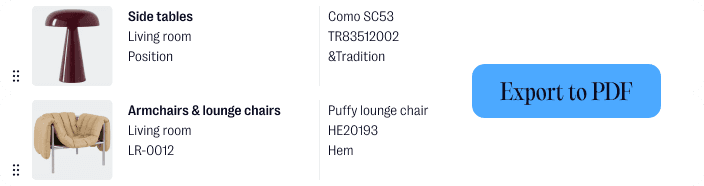 Share a single link with your client – no login required. They’ll get access to product details, full-size images, alternatives, mood boards, and floor plans, all beautifully presented. With real-time comments for feedback and intuitive approval and rejection buttons, the process is super-smooth for everyone. And it's scalable so they can make decisions from a phone on their sofa – no problem.