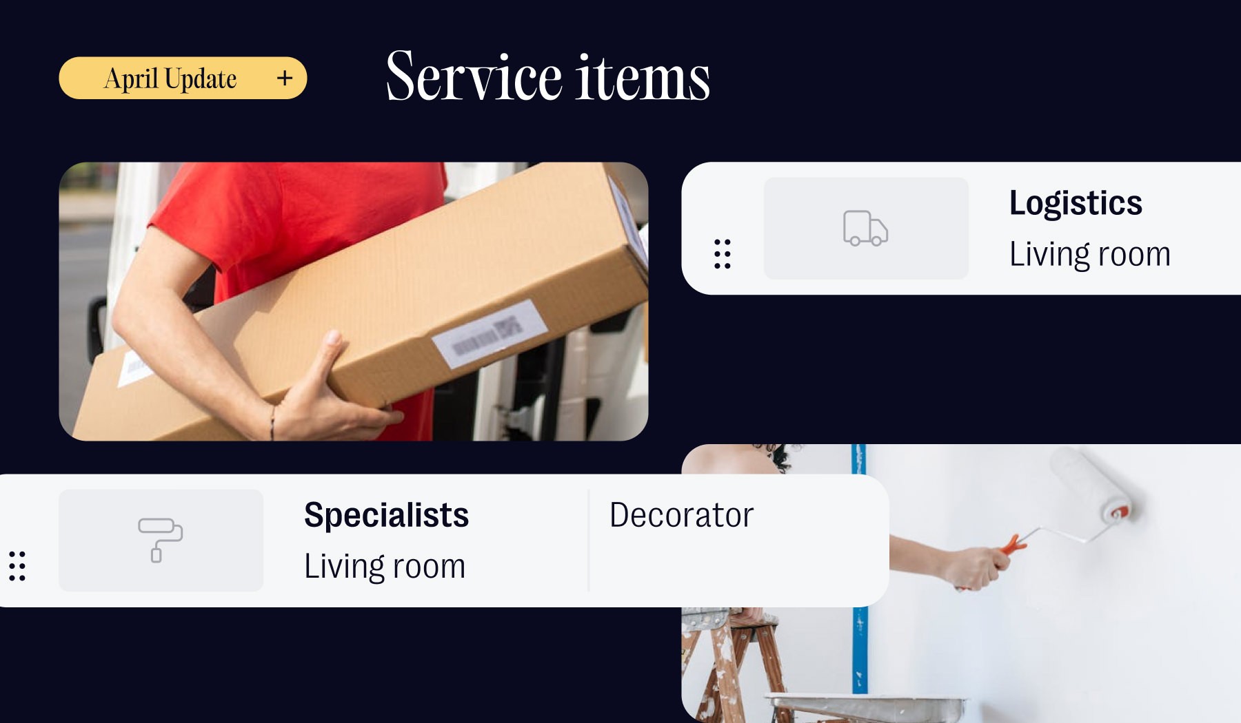 April Update II: Service Items. Adding shipping, installation and service costs to your project