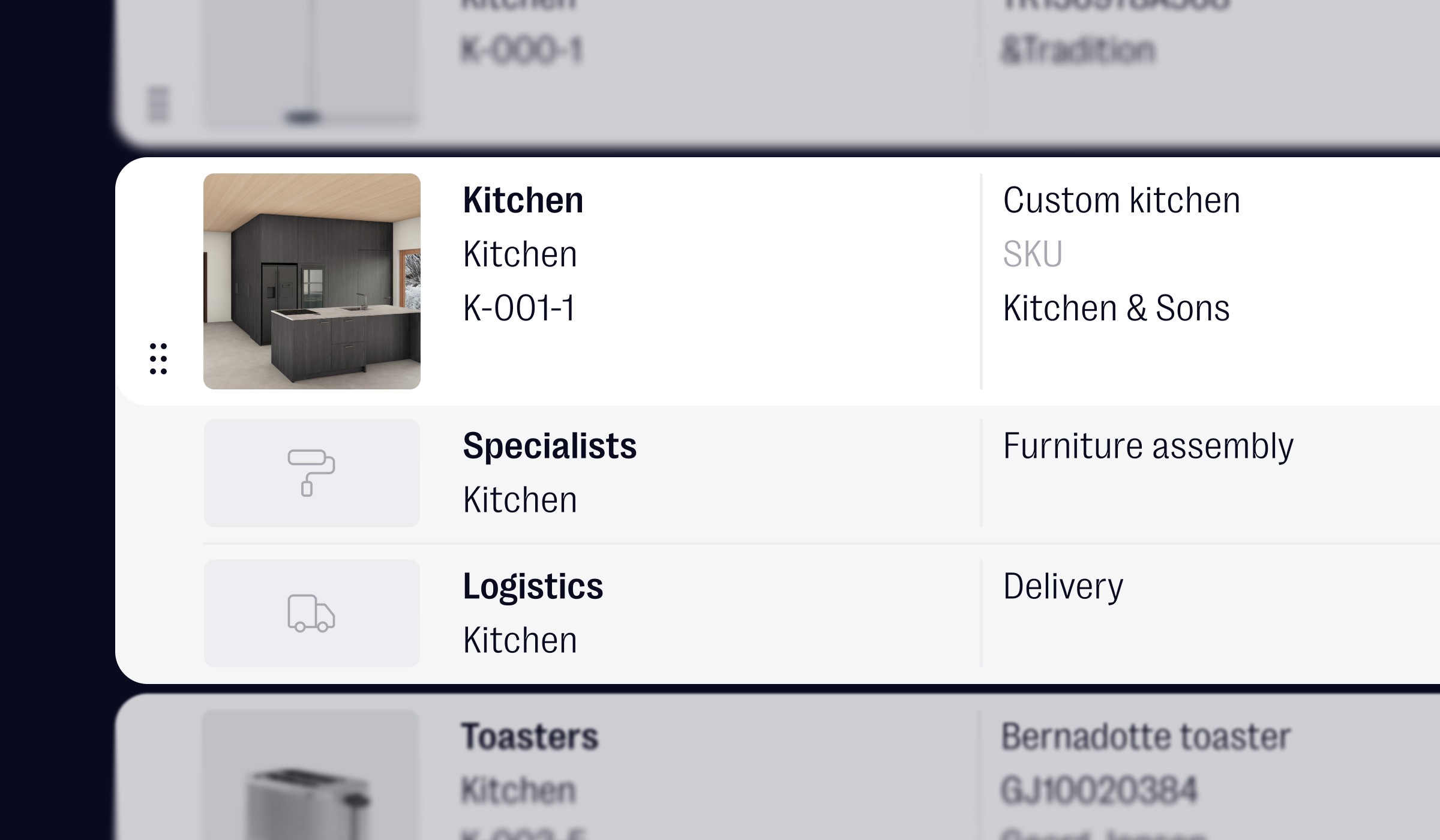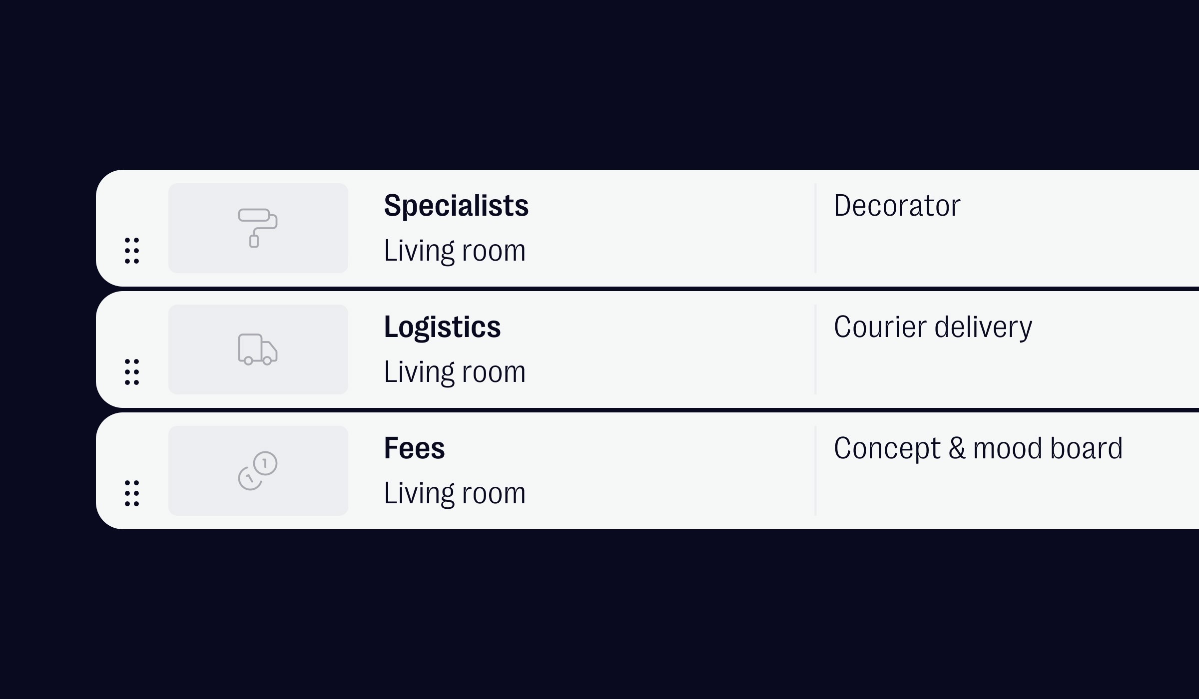 They make sourcing decisions honest. The €2,400 sofa from down the road and the €2,100 sofa from Milan aren't actually the same comparison once shipping is on the page. Putting service items next to products gives you — and your client — a total-cost view of every option, not just a headline price.
