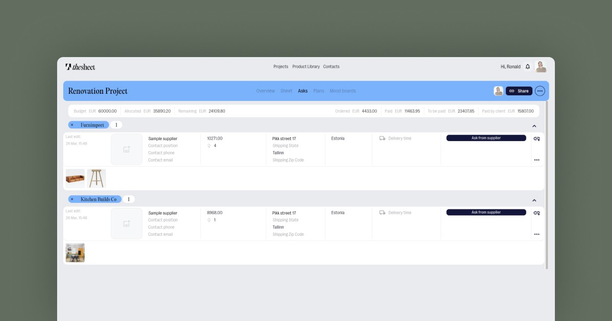 Vendors receive a clean, simple email with your request and can easily view the products on thesheet. They can even upload offers, invoices, and other documents directly back into thesheet, eliminating endless email chains.